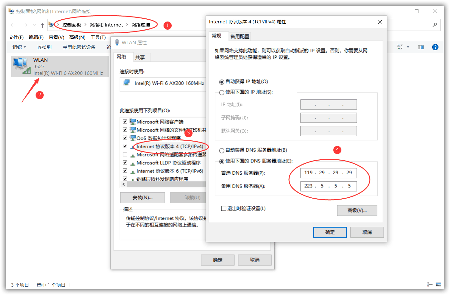 在使用下面的 DNS之前,先通过 ping 命令,测试一下连通性。一般国内使用我提供的几个 DNS 服务器都可以,如果身处国外的话建议选择国外的公共 DNS 服务器。另外经过测试,114DNS、百度 DNS、腾讯 DNS 在国外大部分地区都可以使用,而 Alidns 很多地区连通性不好。